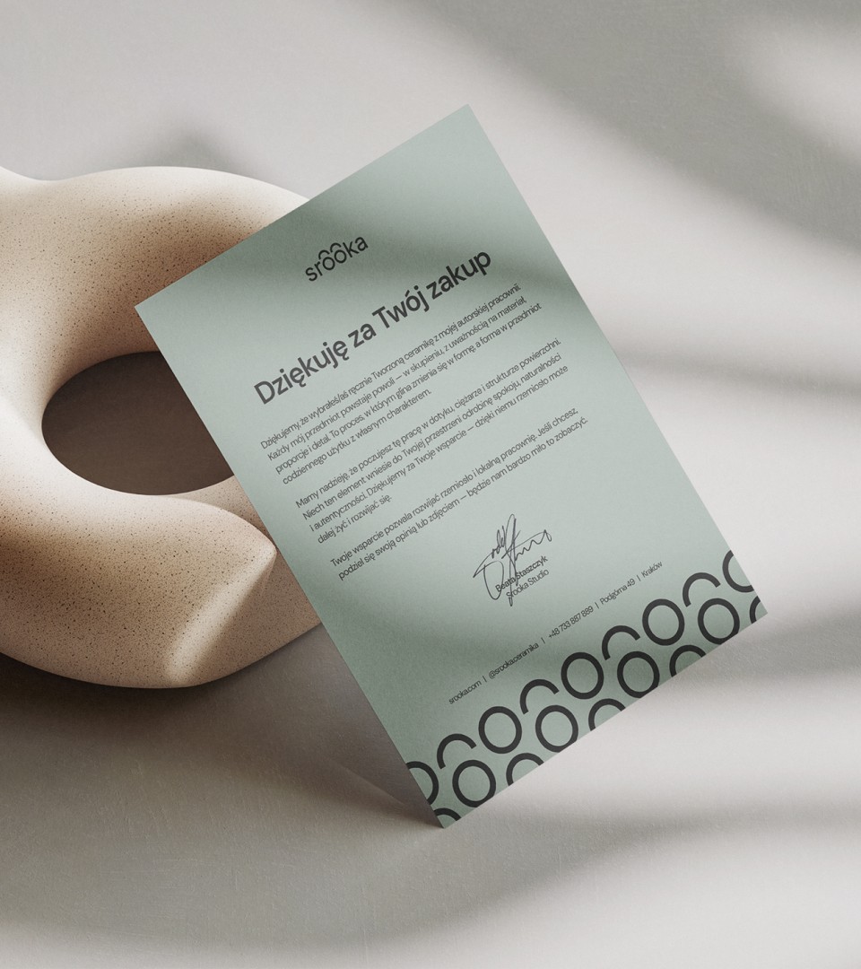A brand starter visual identity for a small one-person ceramics studio based near Kraków (Poland), where time-honored craftsmanship meets a modern aesthetic.